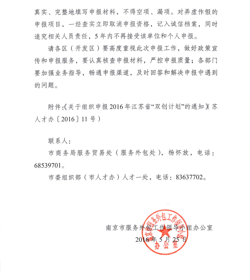 附件:關(guān)于組織申報(bào)2016年江蘇省“雙創(chuàng)計(jì)劃”的通知(蘇人才辦〔2016〕11號).pdf