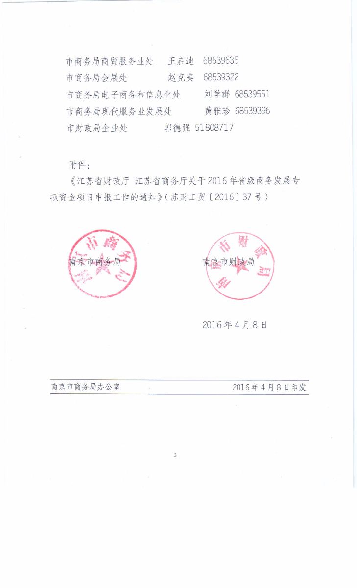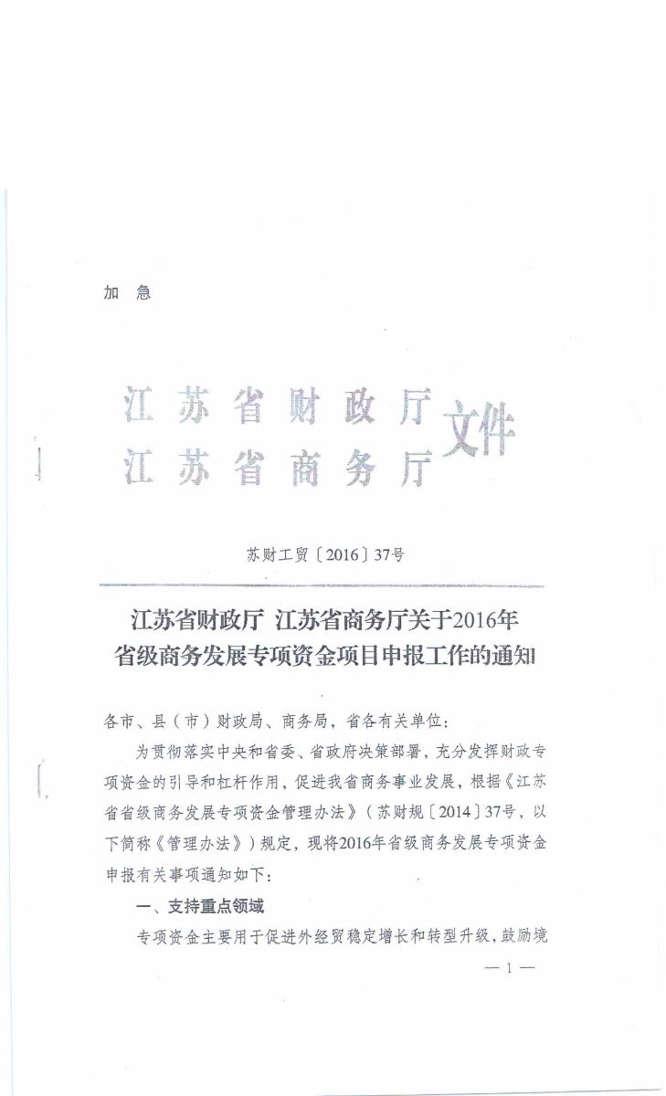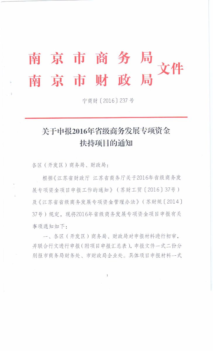關(guān)于申報2016年省商務(wù)發(fā)展專項資金扶持項目的通知